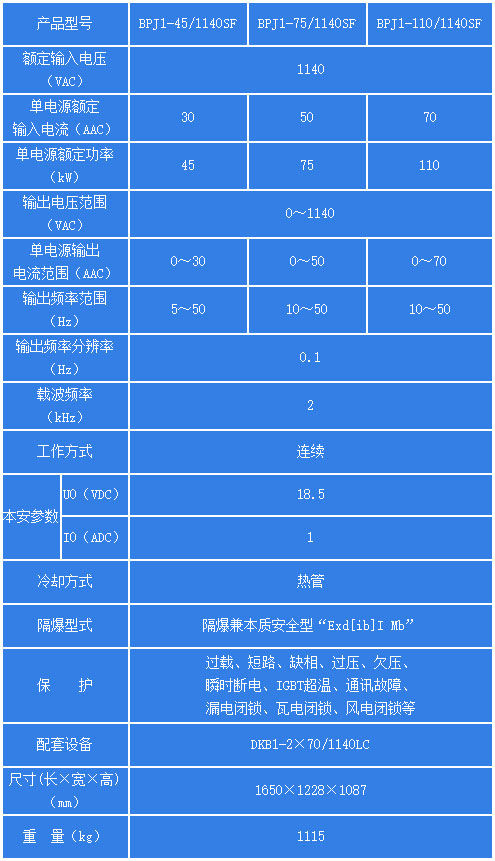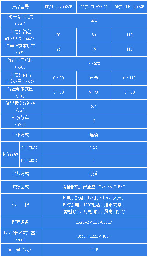 BPJ1-SF系列通風(fēng)機(jī)用隔爆兼本質(zhì)******型雙電源雙變頻調(diào)速器(以下簡稱為變頻器)是針對煤礦井下主、備兩臺局部通風(fēng)機(jī)而研制的一種具有雙電源雙控制系統(tǒng)的變頻調(diào)速設(shè)備。該變頻器適用于煤礦井下具有煤塵、瓦斯等爆炸性氣體的危險(xiǎn)環(huán)境中,對煤礦井下局部通風(fēng)機(jī)進(jìn)行自動控制,其特有的雙電源雙變頻系統(tǒng)及依據(jù)工作面瓦斯?jié)舛葘︼L(fēng)速自動調(diào)速功能,為煤礦井下通風(fēng)機(jī)正常通風(fēng)和排放瓦斯過程中的******隱患提供****解決方案。